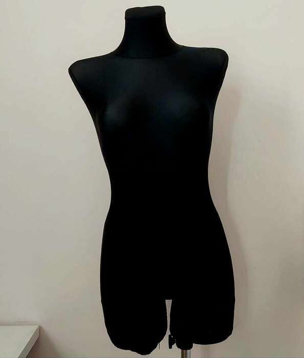 Manekin czarny z metalowa nogą i udamiDla krawcowej, na ekspozycje do sklepu lub do garderoby na ubrania